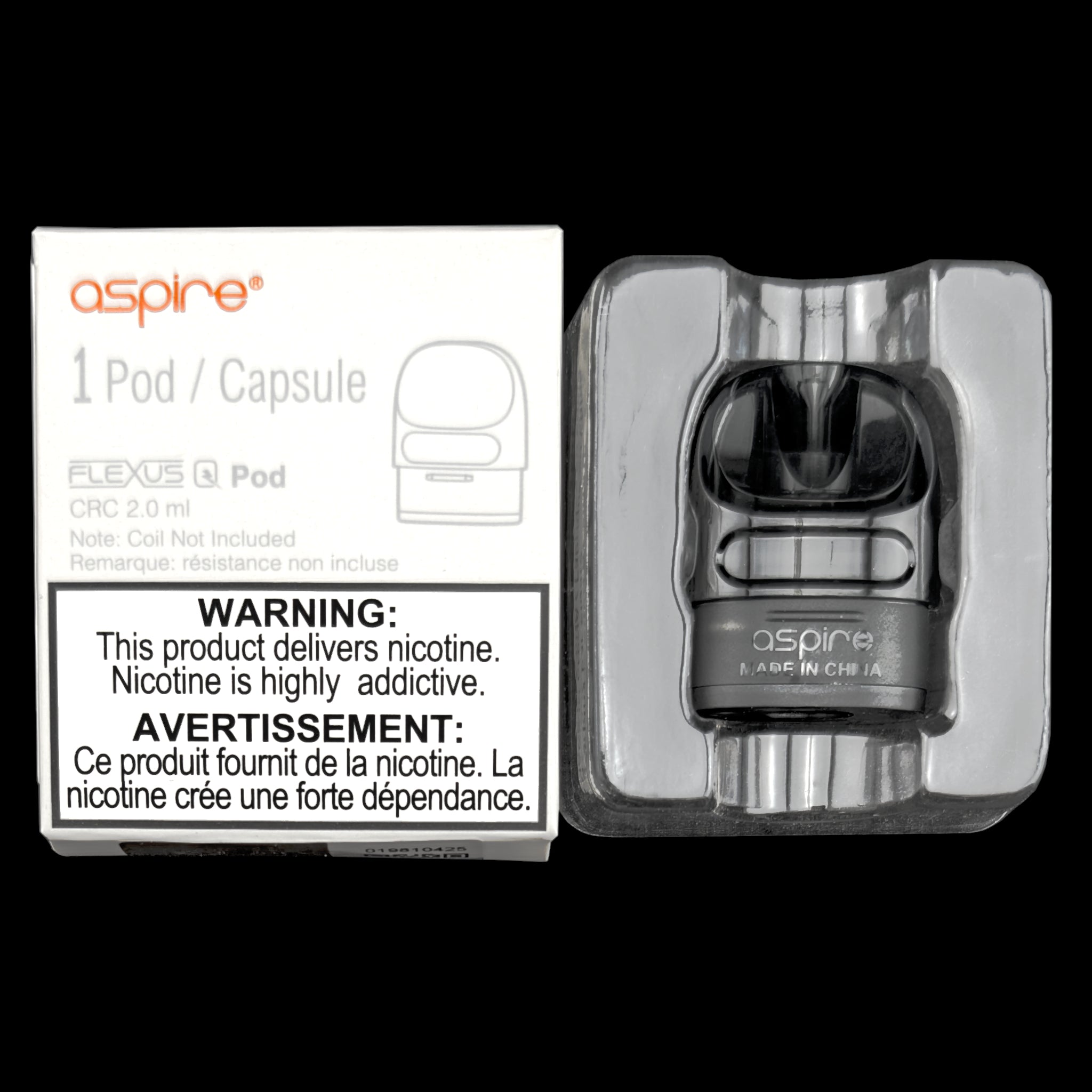Aspire Flexus Q Empty Replacement Pod (1/Pack) for the Aspire Flexus Q Pod Kit. It features a 2ml E-liquid capacity and is compatible with the Aspire AF Mesh Replacement Coils that are sold separately in packs of 5.