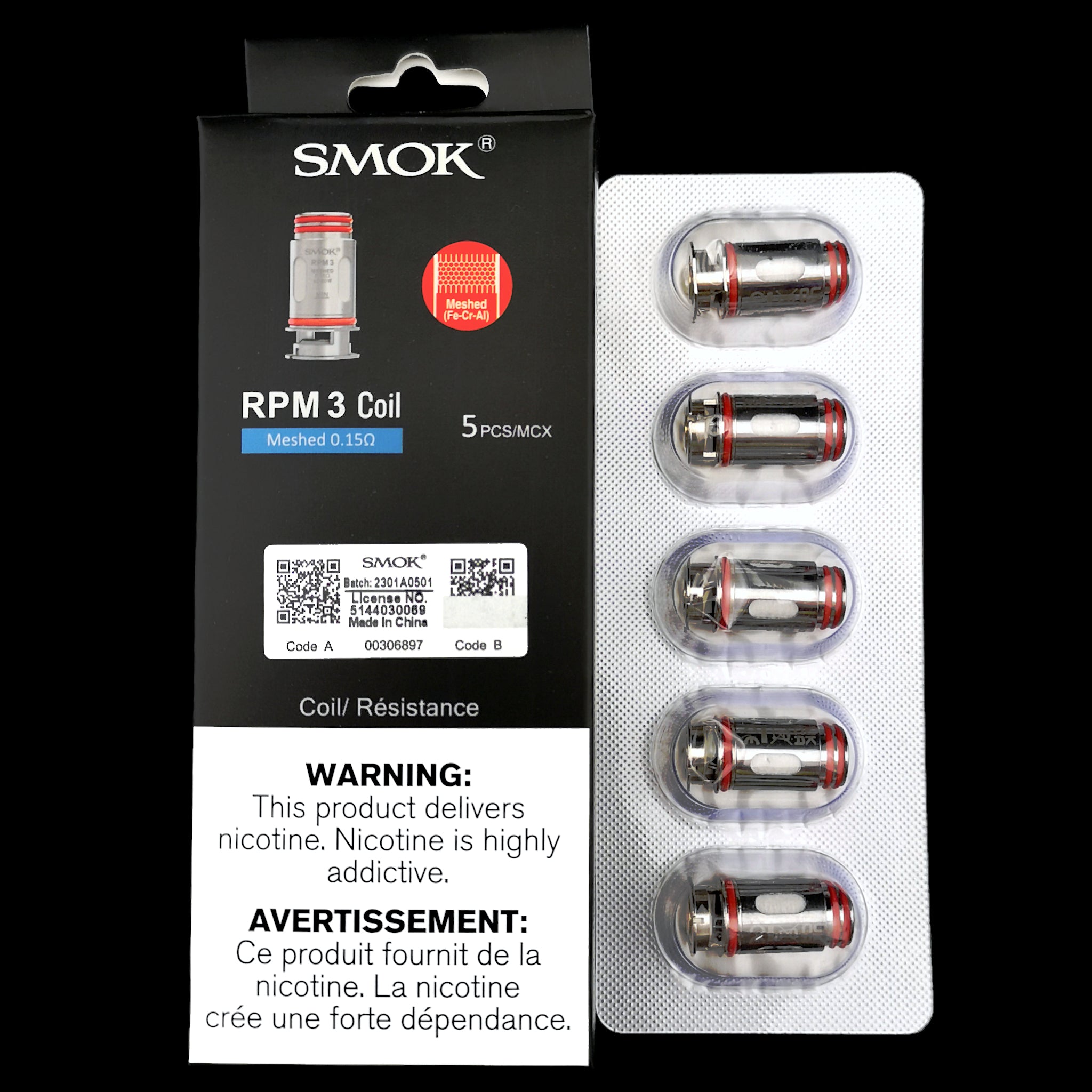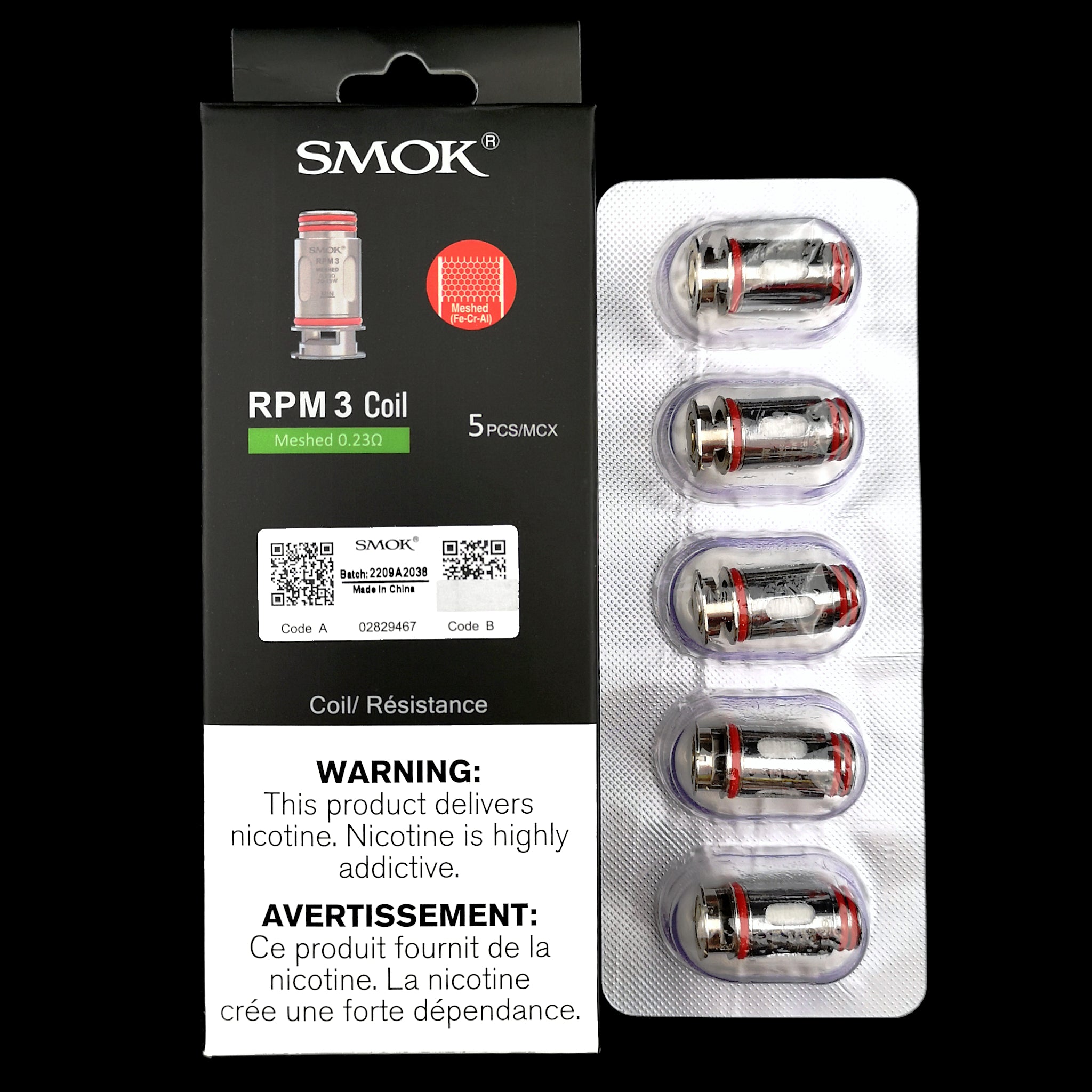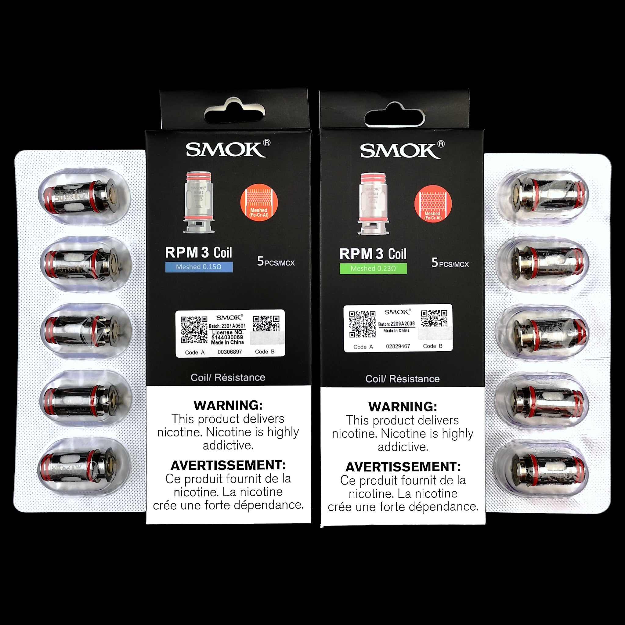 The SMOK RPM 3 Replacement Coils are mesh coils which come in either 0.15ohm or 0.23ohm, and are installed in a press-fit manner. Includes 5 coils per pack.